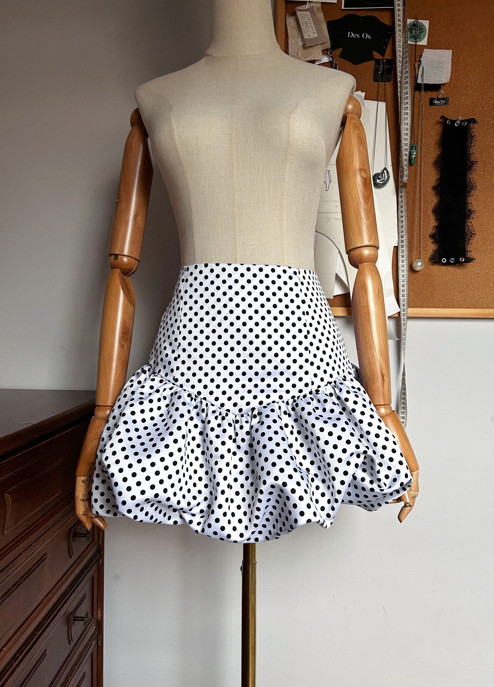 Юбка из итальянской плотной тафты. Вытачки акцентируют внимание на изгибах фигуры, элегантно выделяя округлость бедер. Дизайн юбки с воланом заметно подчеркивает и стройнит силуэт Модель отлично сочетается с любым корсетом и любым другим верхом.